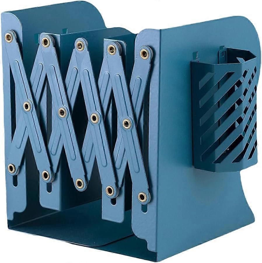 Adjustable Bookends, Metal Telescopic Book Stand, Duty Metal Steel Book Stand Desktop Organizer Expandable Bookshelf with Pen Holder for Home Office S