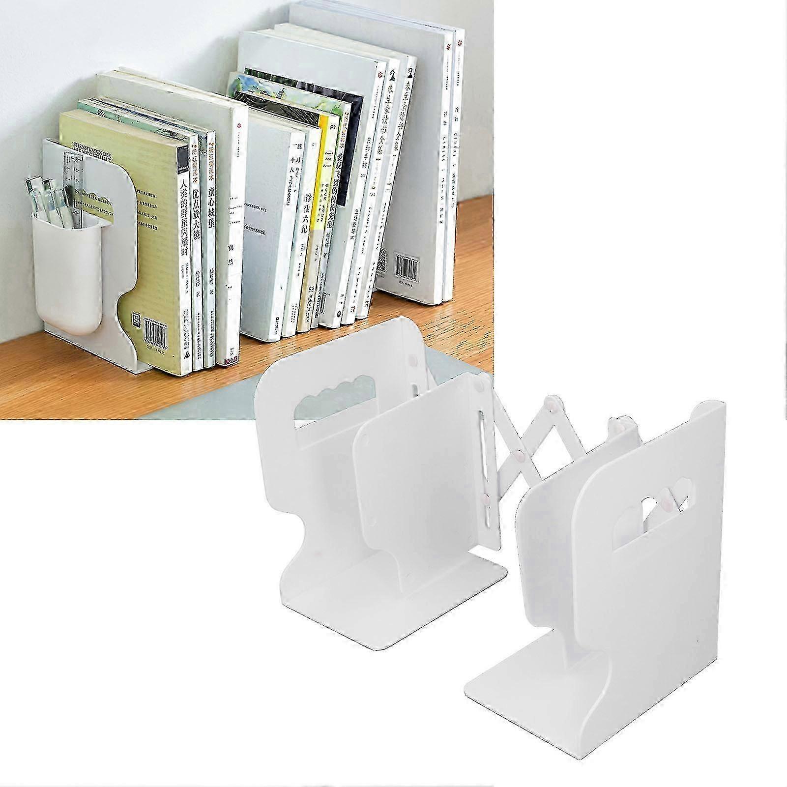Adjustable Book End PP Retractable Anti Slip Desk Book Holder Organizer for Shelves Home School Office White