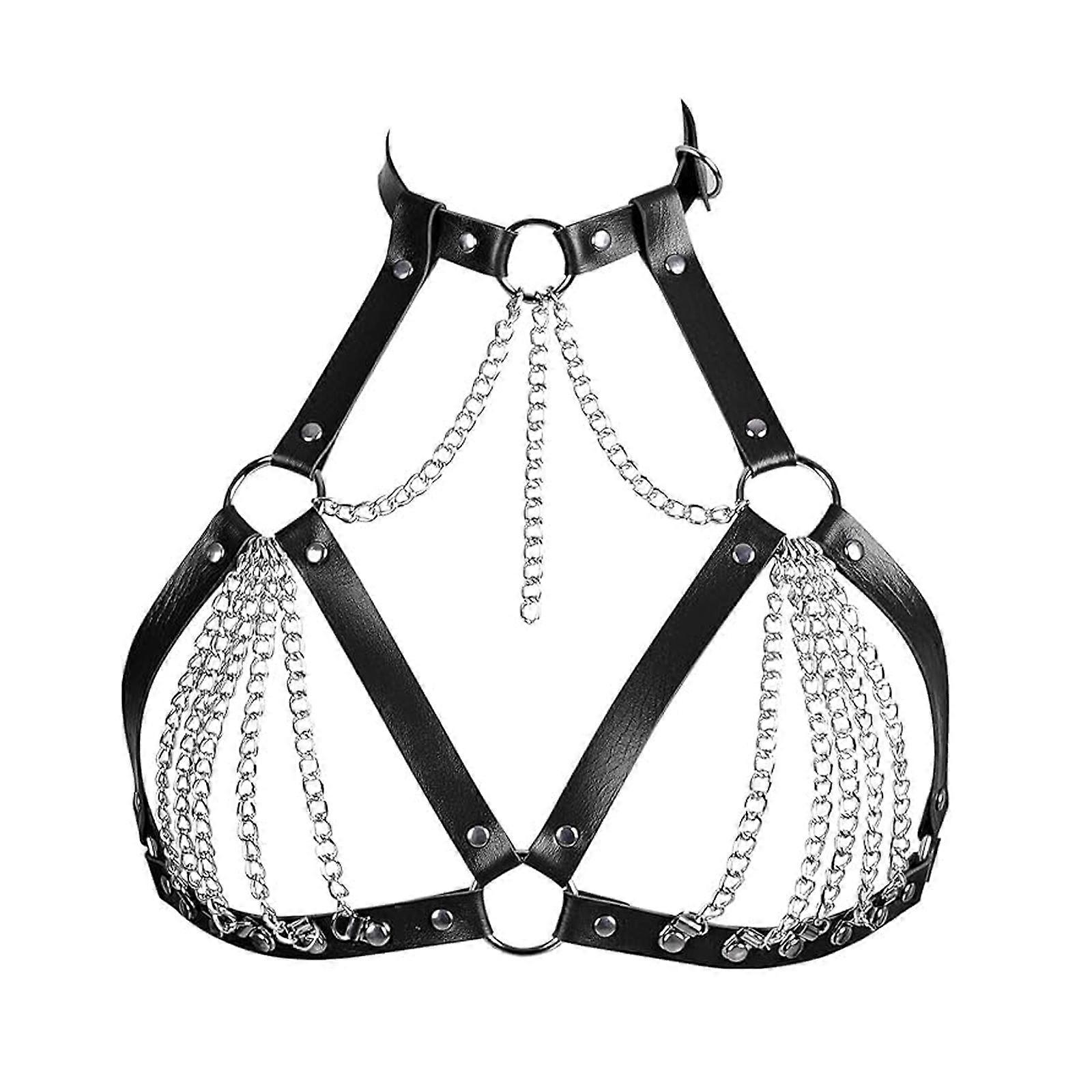 Adjustable Black Leather Chest Harness Body Waist Chain Belt Women's Punk Fashion for Festival Party and Nightclub Wear