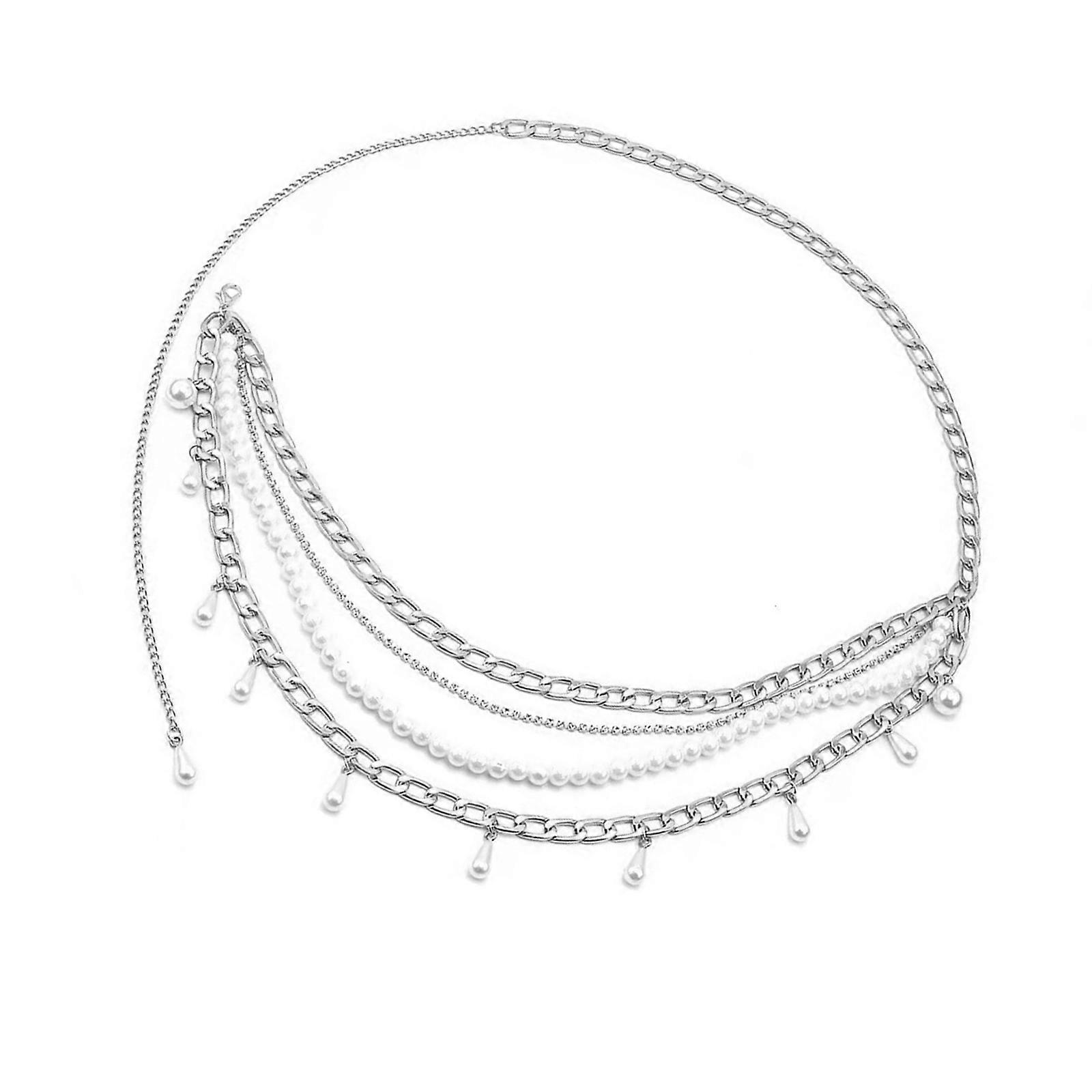 Adjustable Layered Imitation Pearls Body Jewelry Gold Silver Tone Chain For Daily Wear Evening Event And Wedding White K