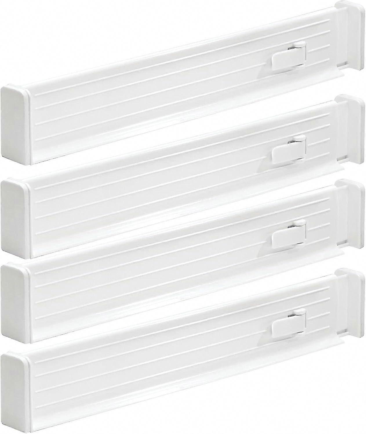 Adjustable Drawer Divider Set of 4 - Plastic Drawer Organizer for Kitchen, Bedroom, Cutlery - White