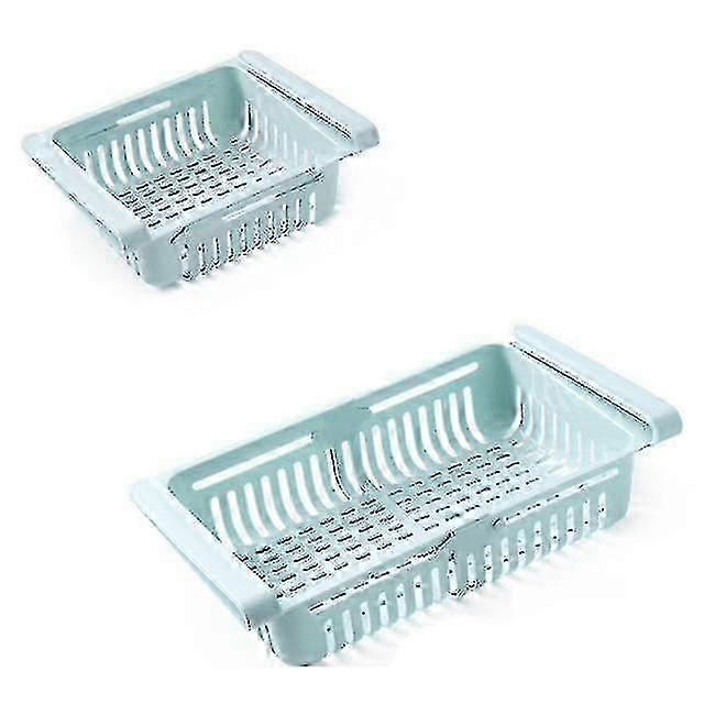 Adjustable Light Blue Stretchable Refrigerator Organizer Drawer Basket - Storage Solution for Vegetables & Fresh Produce