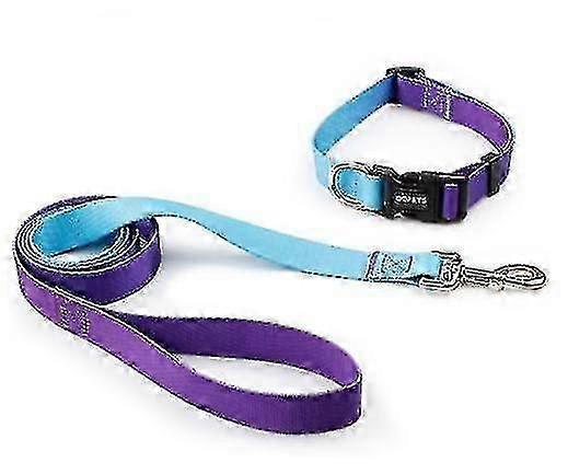 Adjustable Dog Collar & Leash Set for Training, Walking, Running - Blue Purple