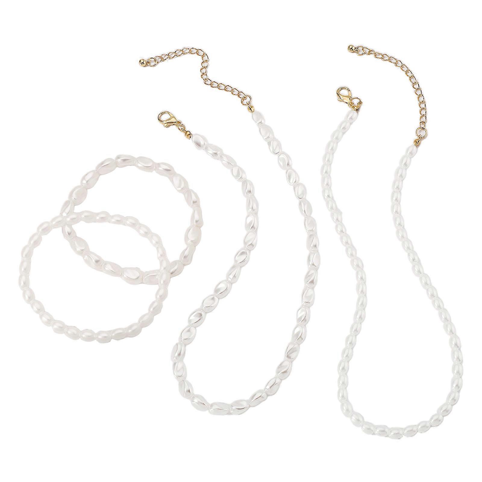 Pearls Jewelry Set with Adjustable Length Fashionable French Pearls Neck and Wrist Chain Set for Daily and Formal Wear