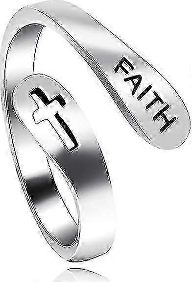 Adjustable 925 Sterling Silver Cross Faith Ring for Women and Men, Christian Finger Open Rings, Religion Jewelry
