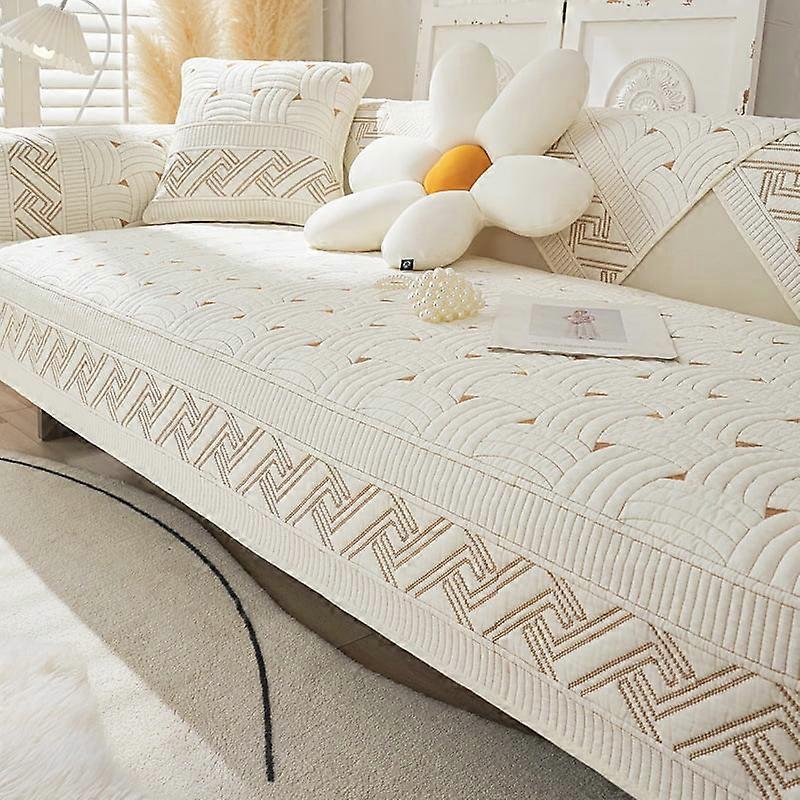 Zhuge Cotton Quilted Embroidery Sectional Couch Cover Furniture Protector Cover-35.4*47.2inch,White