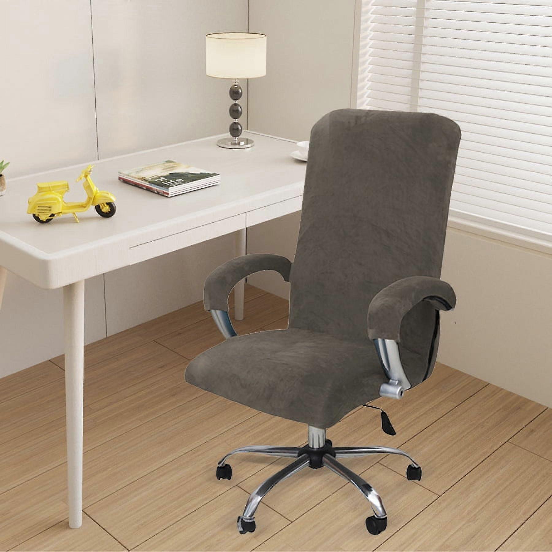 Zhuge Velvet Office Chair Cover with Arm Covers Stretch Computer Desk Chair Covers Universal Swivel Chair Covers Gaming Chair Covers,Grey(L)