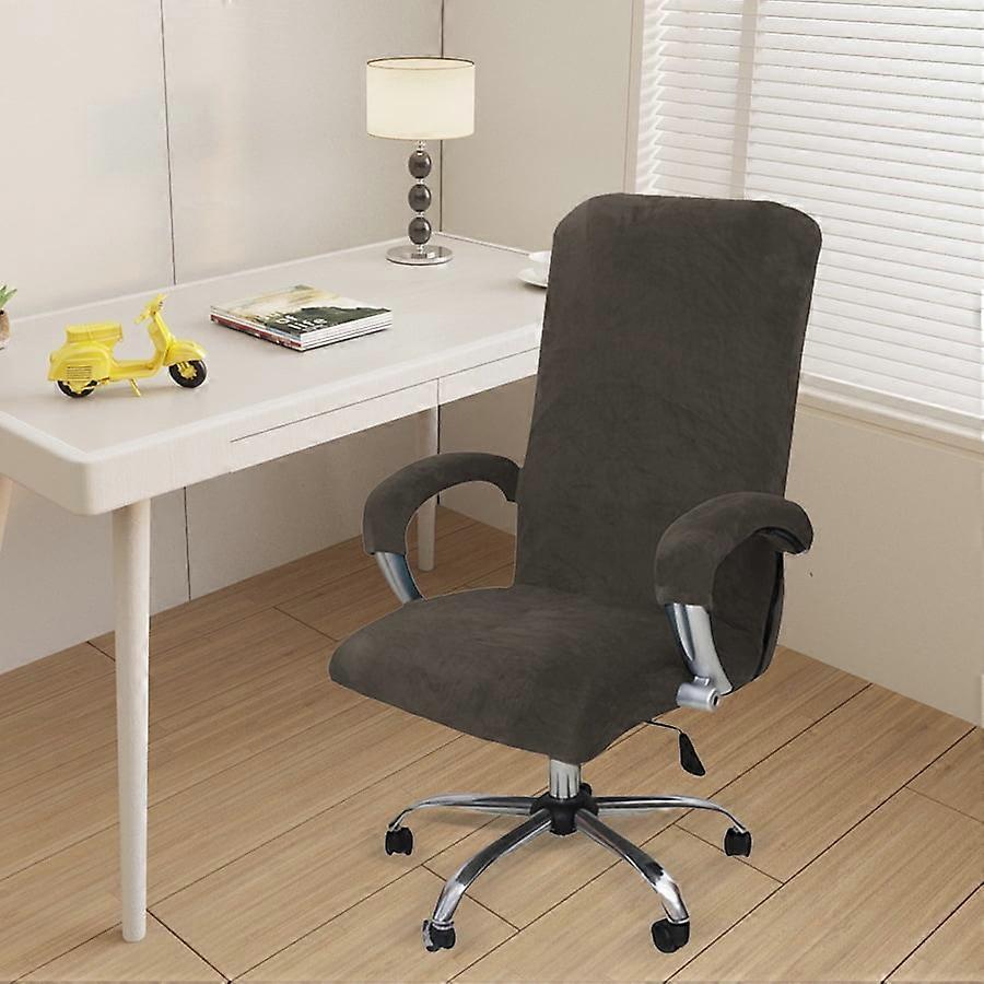 Zhuge Velvet Office Chair Cover with Arm Covers Stretch Computer Desk Chair Covers Universal Swivel Chair Covers Gaming Chair Covers,Dark Grey(L)