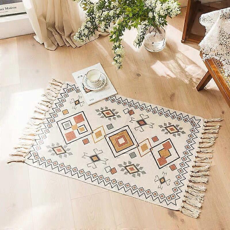 Zhuge Boho Bath Rug, Bohemian Kitchen Runner Rug with Tassels, Cotton Washable Carpet Mat for Bedroom, Bathroom, Entryway, Hallway Indoor Home