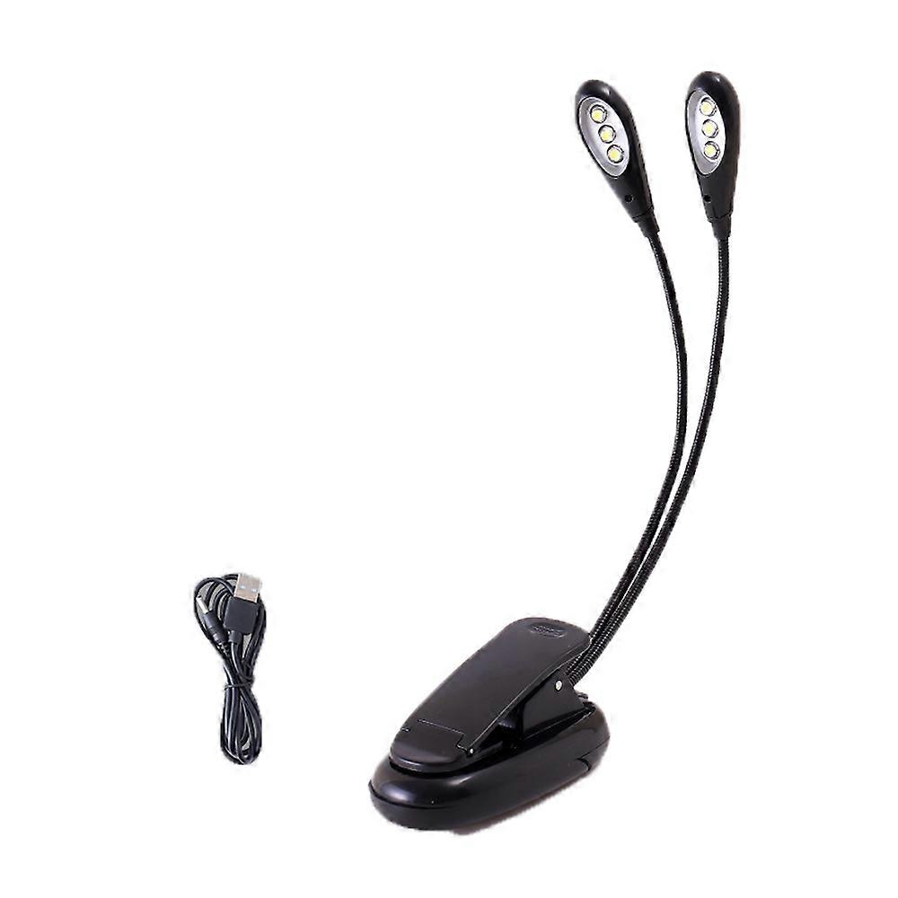 LED Light for Music Stand, Adjustable Double Head Clip on Lamp with USB Cable Lamp for E-Reader Book & Bed Headboard (6 leds)