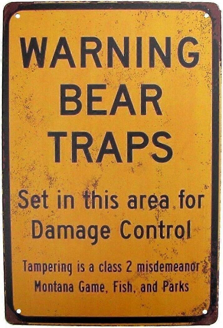 Beware of Warning-Bear Trap tin Sign Vintage Wall Decoration Outdoor Courtyard Garden and Home Outdoor Hunting Lodge Decoration Trap Sign 8x12 inch