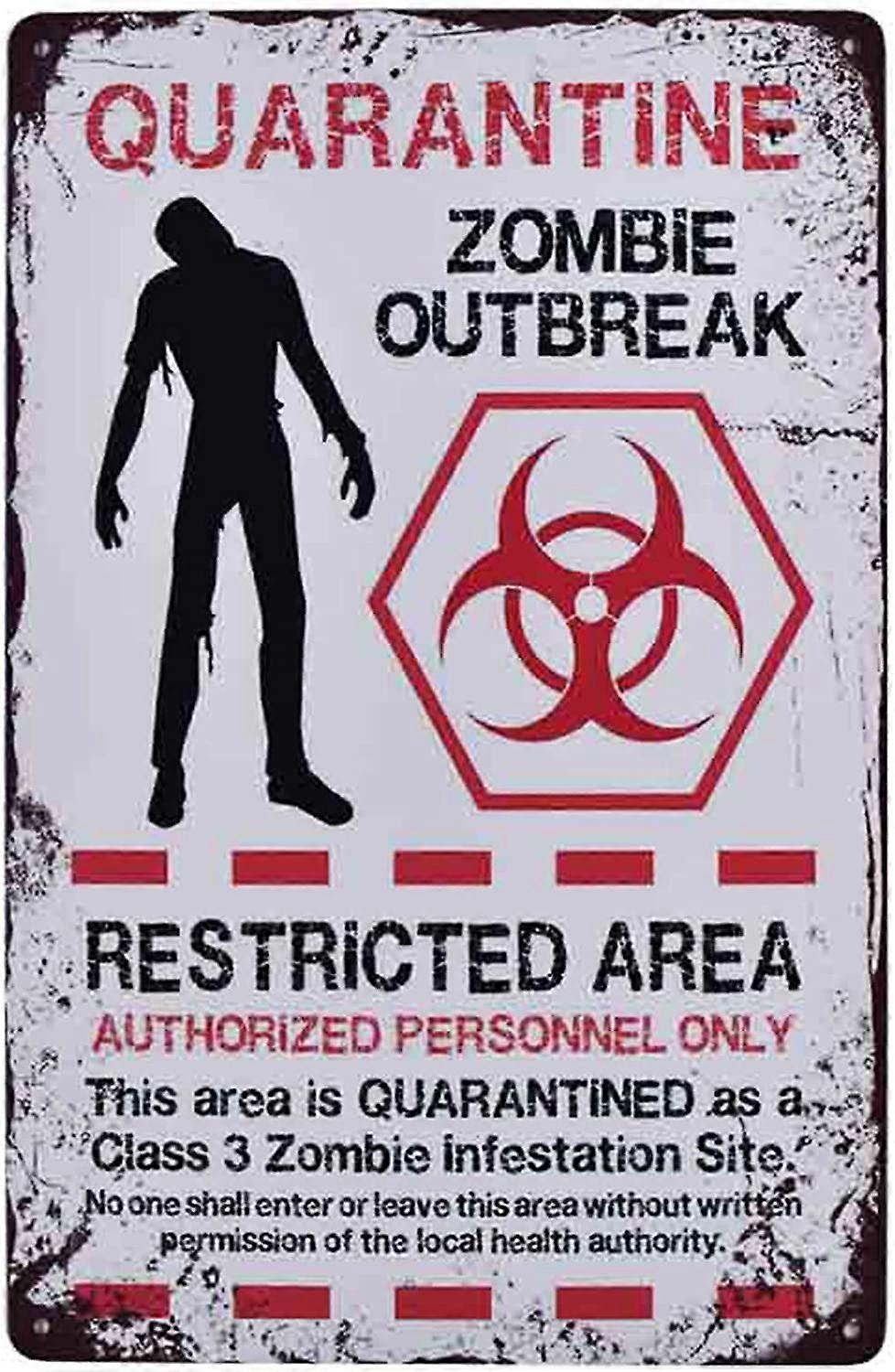 Warning Restricted Area Quarantine Zombie Outbreak Vintage Tin Signs Retro Metal Plate Wall Decor Funny Coffee Bar Signs 8X12Inch