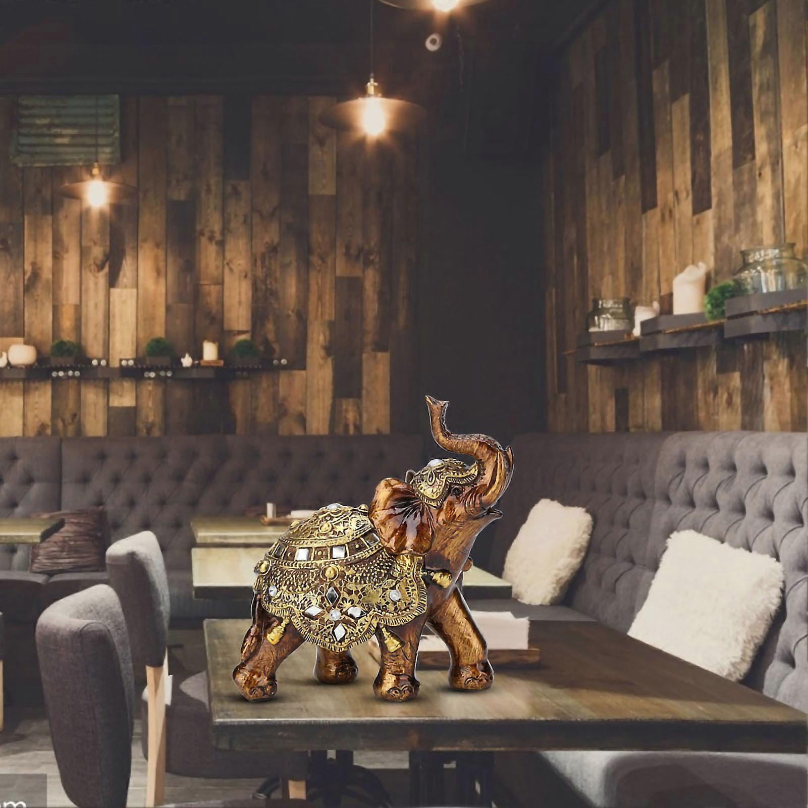 Elephant Shape Resin Ornament Wood Grain European Style Home TV Cabinet Craft DecorationGold L