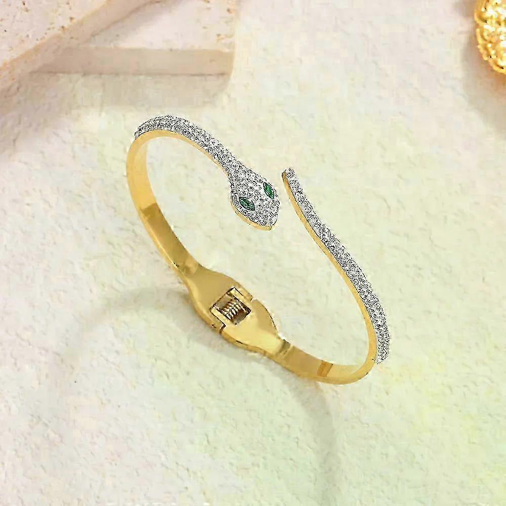 Luxurious crystal snake bracelet, black sapphire women's open stainless steel snake head bracelet, emerald spring gold plated