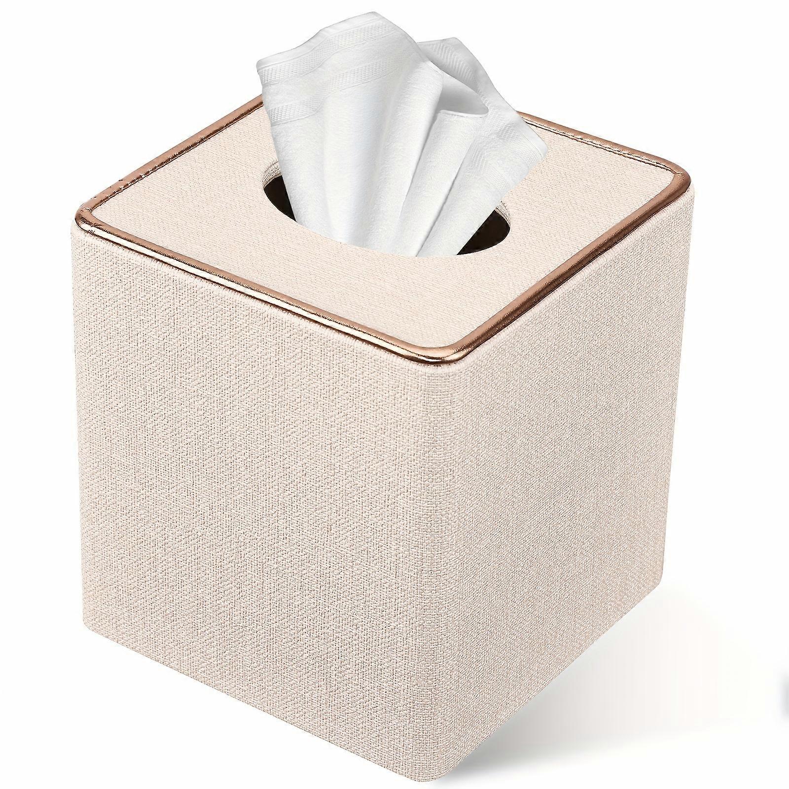 Luxurious Golden Edge Square Pearl White Tissue Box - Conveniently Holds Tissues, Smoothly Draws Paper for Easy Access - Premium PU Leather Material,