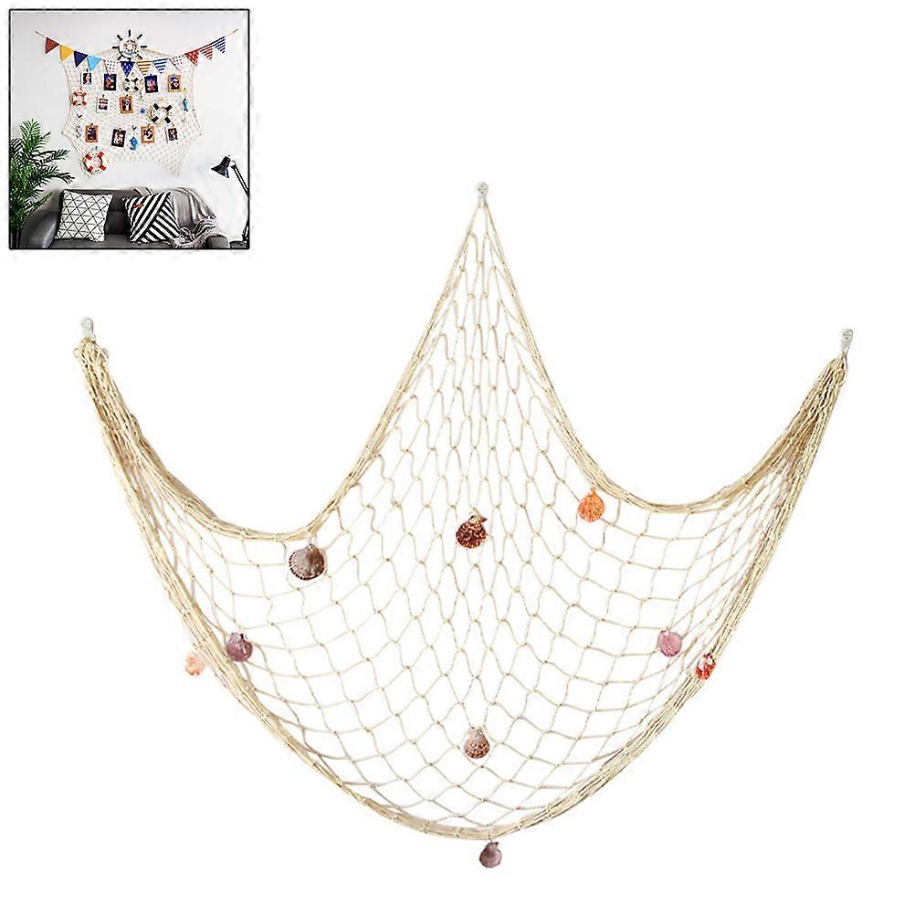 Decorative Fishing Net Wall Decor with Seashells Nautical Style Wall Hangings Ornament