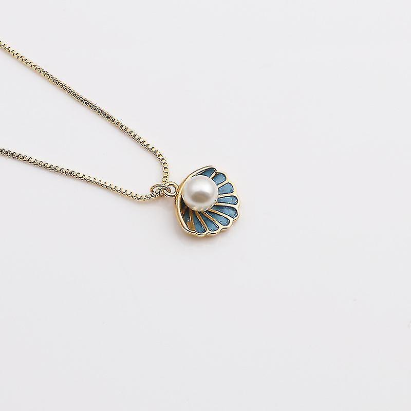 Seashell Pendant Necklace, Enamel Shell Blue Necklace For Women,delicate Small Cute Gold Plated Teen Girls