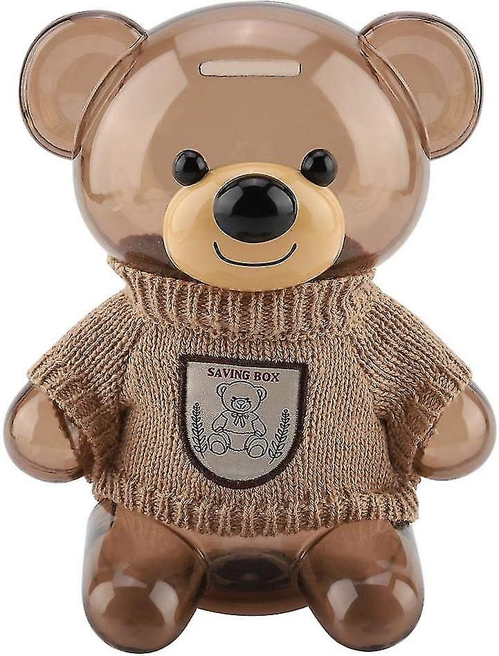 Piggy Bank, Portable Children Coin Piggy Bank Money Box Cartoon Clothes Bear Plastic Transparent Mon SX
