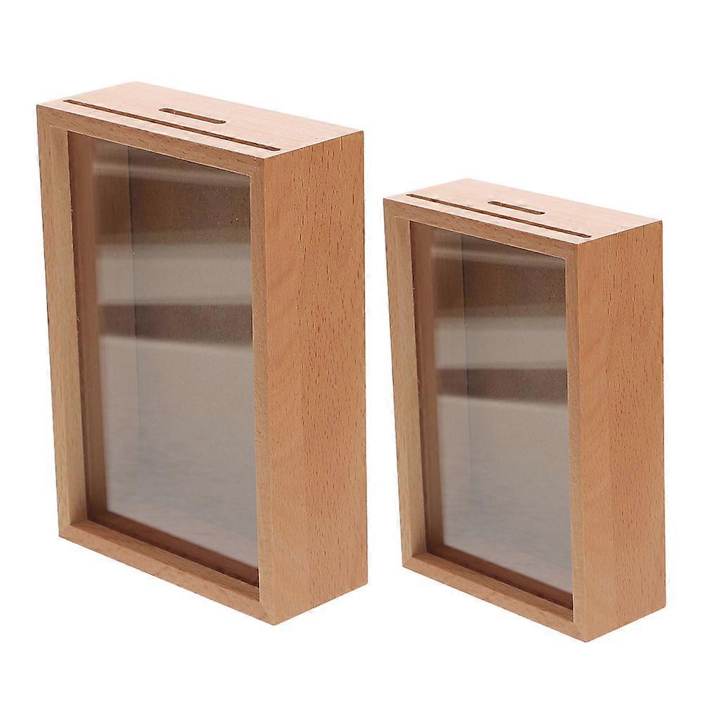 Saving Money Box Wooden Photo Frame Piggy Bank Home Decoration Rectangular Brown Coin Storage 2Pcs