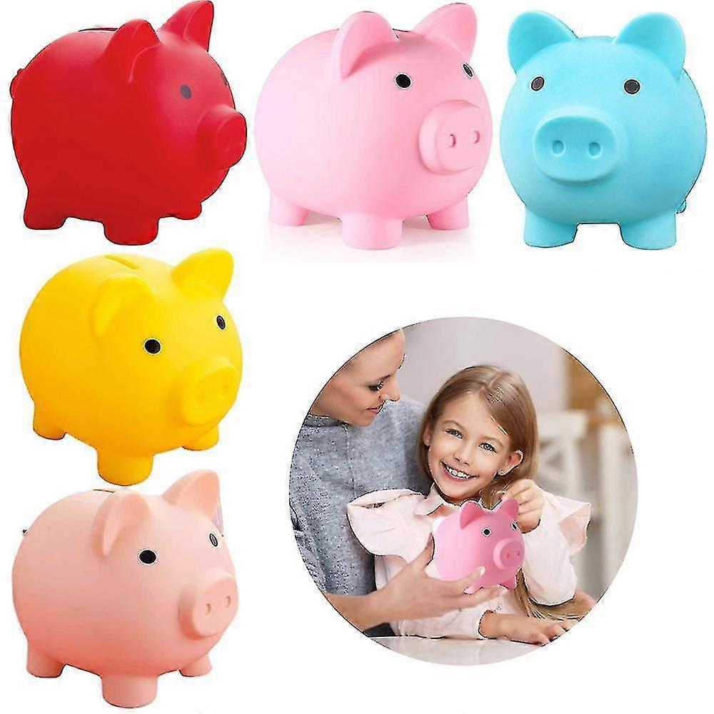 1 My First Piggy BankA starter bank for young toddlers, start the saving process by adding cash to this cute piggy bank There are six colorspink, blue, yellow, purple, light purple and flesh-color for boys and girls 2 Unbreakable Money BankMade by non-toxic thick plastic material, this cute piggy bank is very sturdy and toddler tough, kids might drop it many times without any damage 3 Medium Size Piggy BankThis money bank is about 5 5 x 4 9 x 4 7 inches, big enough to hold a lot of coins and cash, perfect size for little children to hold or take away 4 This well designed piggy bank has a built-in plastic knob at the bottom, easy for kids to keep the money safe or take the money out 5 Practical Gift for ToddlersThis piggy bank is great for kids ages 2, 3, 4, 5, 6 years old, as birthday presents, Easter gifts, and shower gifts Package included:1 x Piggy Bank