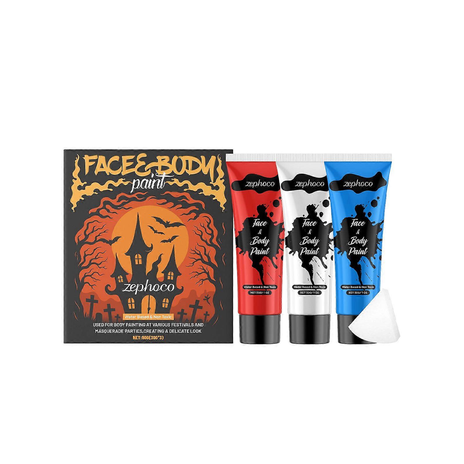 Red White and Blue Face Paint, Face Color Body Paint, Halloween Makeup Set with Makeup Brush, for Halloween Fancy Dress Party