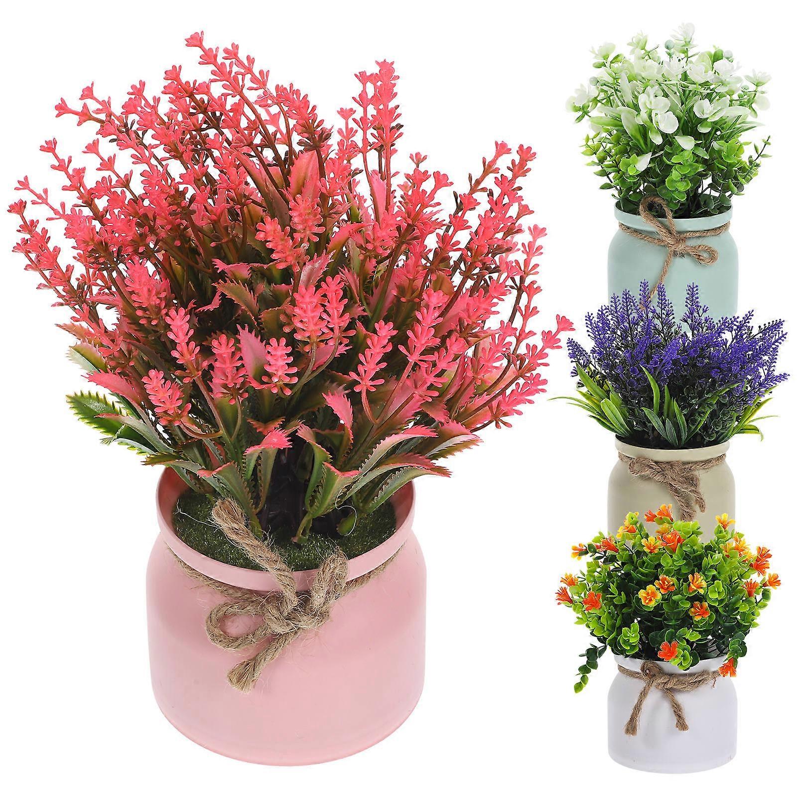 4pcs Realistic Artificial Potted Bonsai Plants with Red, Purple, and Green Foliage – Indoor & Outdoor Home, Office, and Event Decor