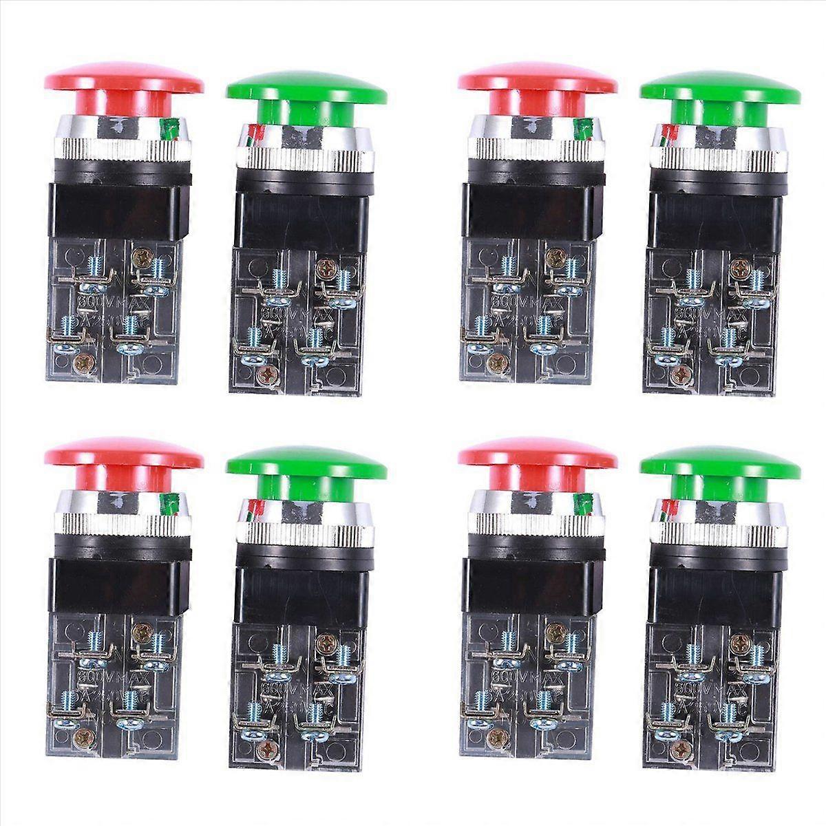 Red Green AC 250V 6A DPST Momentary Mushroom Head Push Button Switch