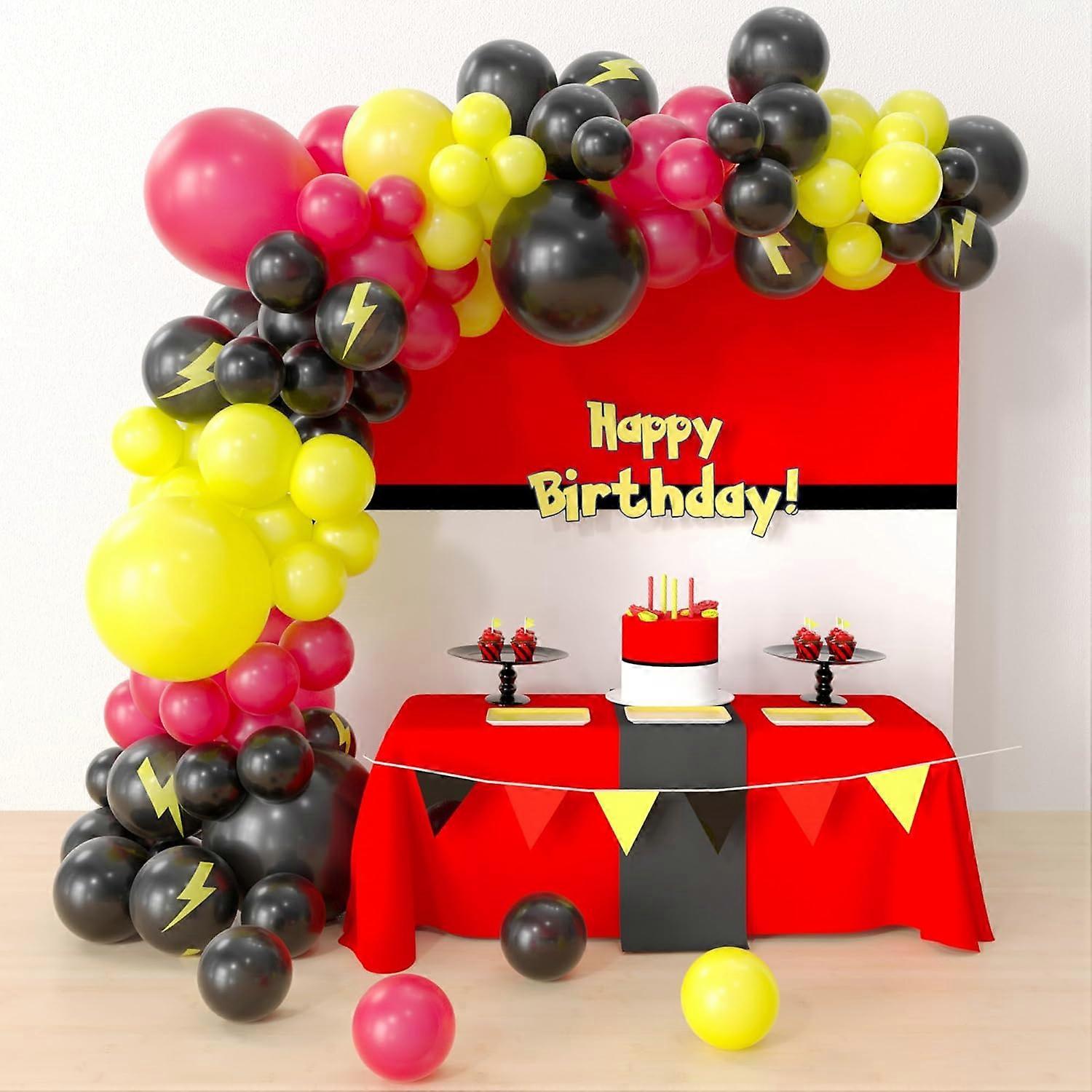 Red Black Yellow Birthday Party Supplies - 116 Pcs Cartoon Balloon Garland Arch Kit, Cartoon Theme Latex Balloon Arch For Cartoon Ball Baby Shower Bir