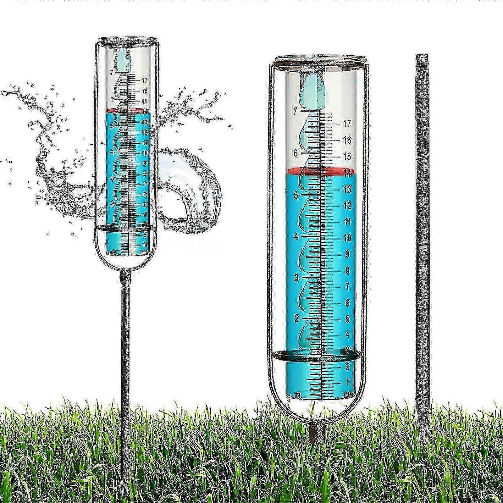 Rain Gauge With Red Gasket Collector Outdoor Articles 7 Inch Durable Wrought Iron Gradient Blue Garden Supplies