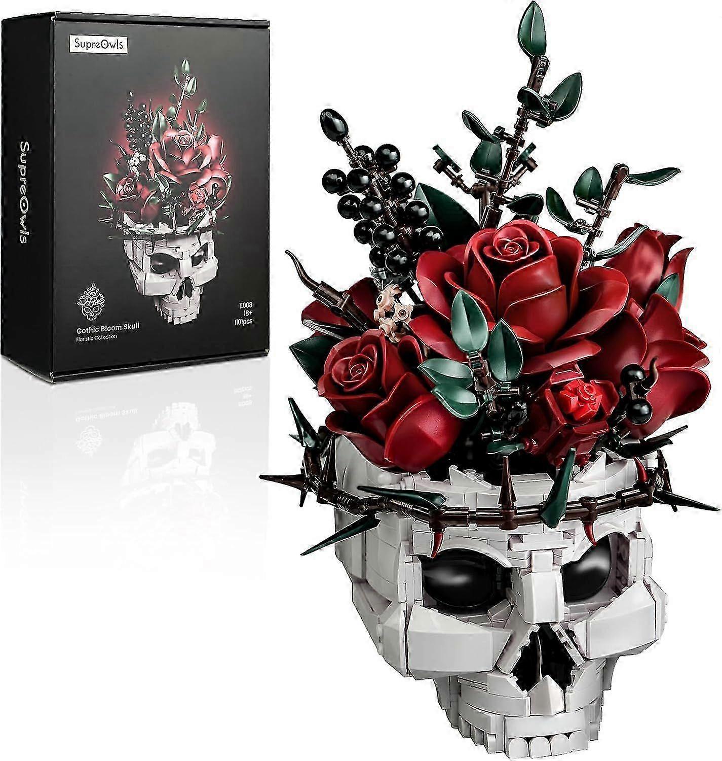 Red Rose Bouquet Building Set with Skull Vase Red Artificial Roses Gifts, Valentine's Day, Halloween, Gothic Home Decor 2025