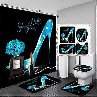 Red High Heels Shower Curtain Set (4PCS), Waterproof Fabric, Non-slip Bath Mat, Compatible with Modern Fashion Bathroom Decor