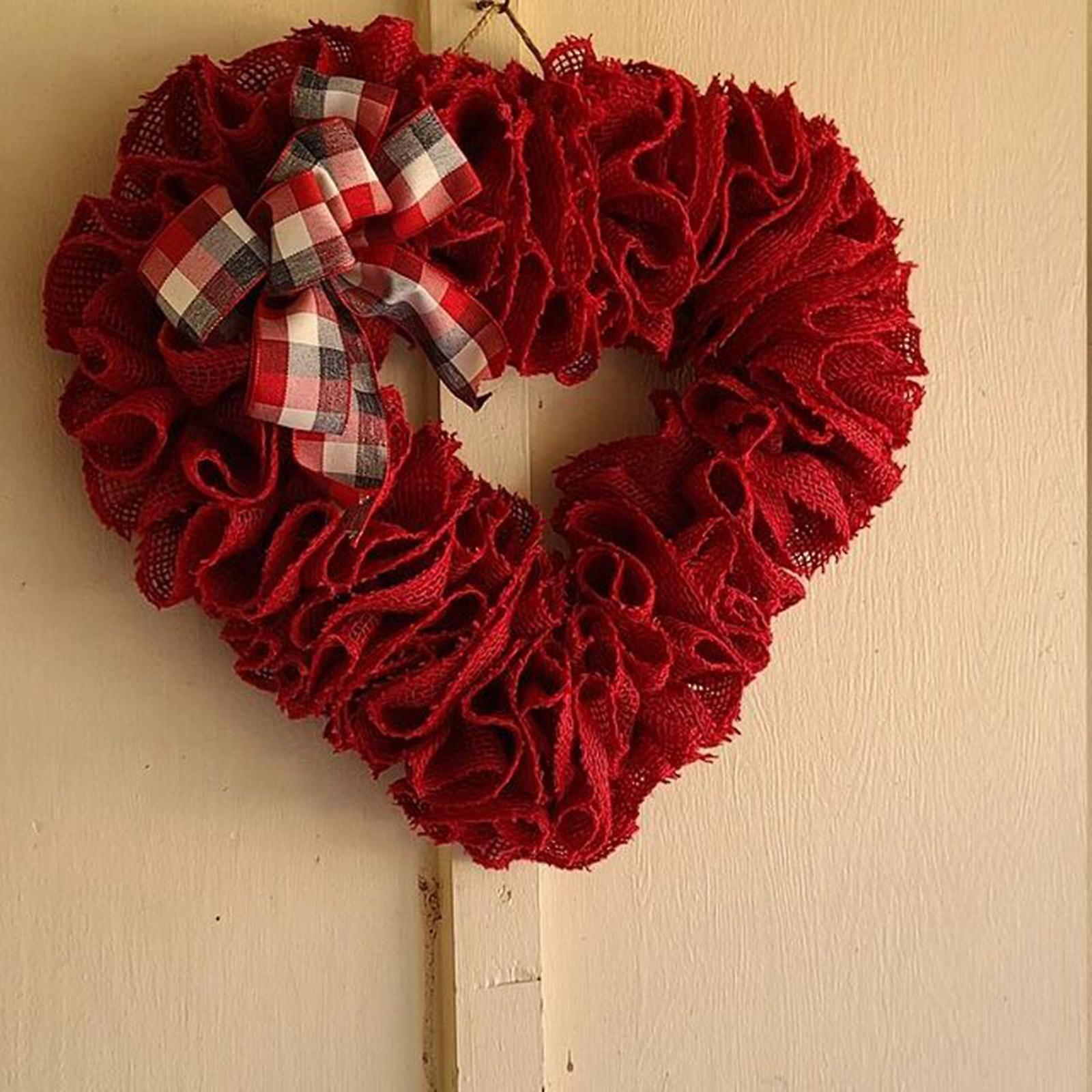 Red Heart Shaped Wreath Valentine's Day Wreath Decorative Valentines Day Decor Hanging for Birthday Party Indoor Door Wedding