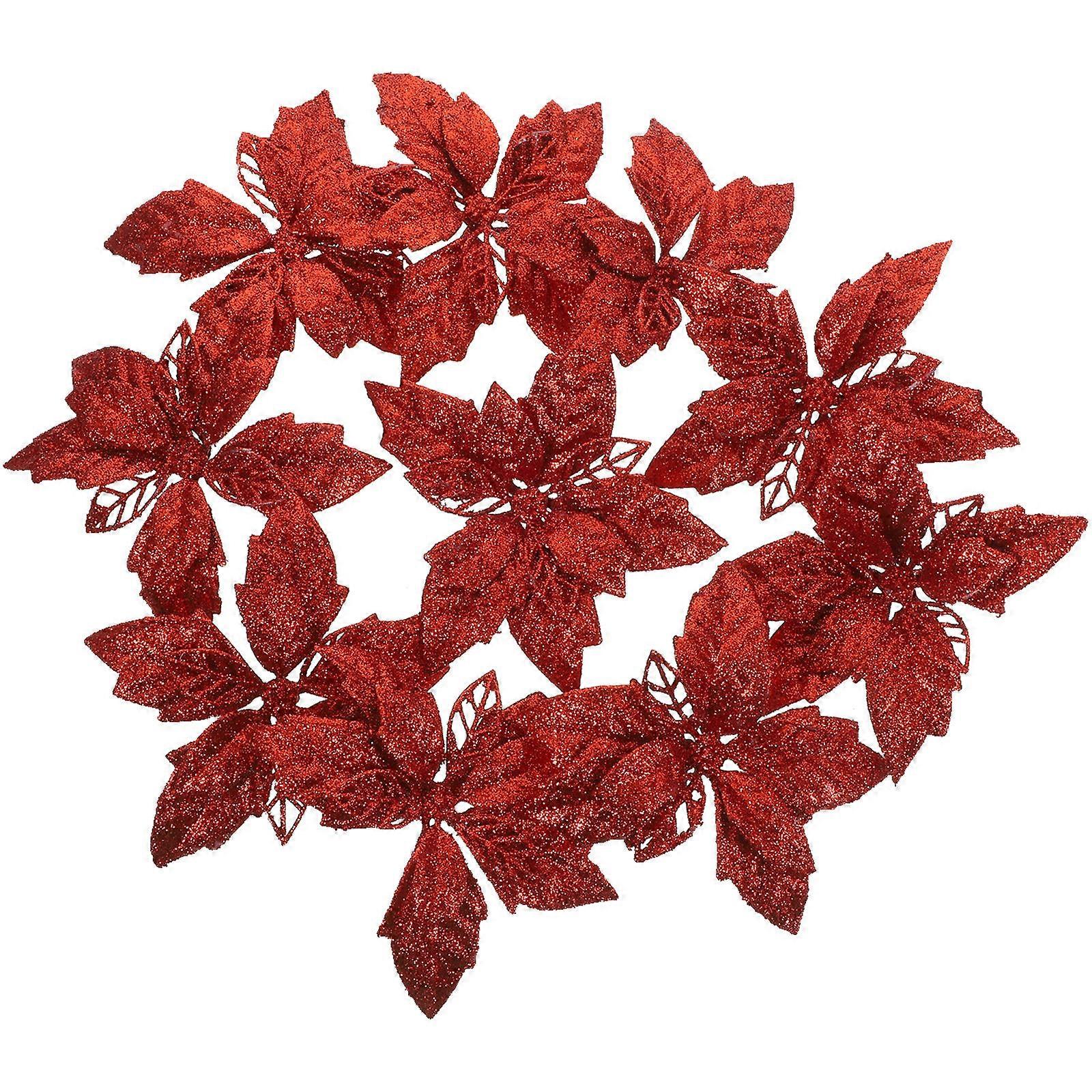 Red Faux Poinsettia Stems Christmas Flower Decorations 13.5CM Tree Decoration 10Pcs