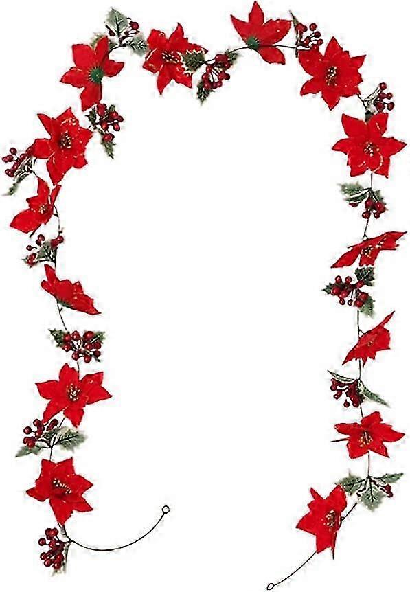 Berry Christmas Garland with Red Berries and Holly Leaves, Artificial Poinsettia Decoration for Festive Holiday