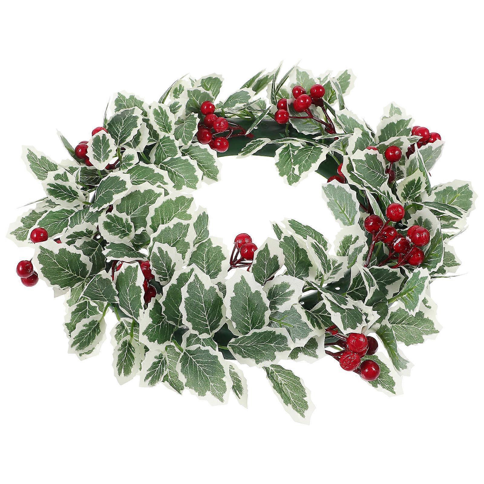 Christmas Hanging Wreath with Red Berries and White Edged Leaves – Lightweight Garland for Door, Wall, Fireplace Decoration – Festive Holiday, Party