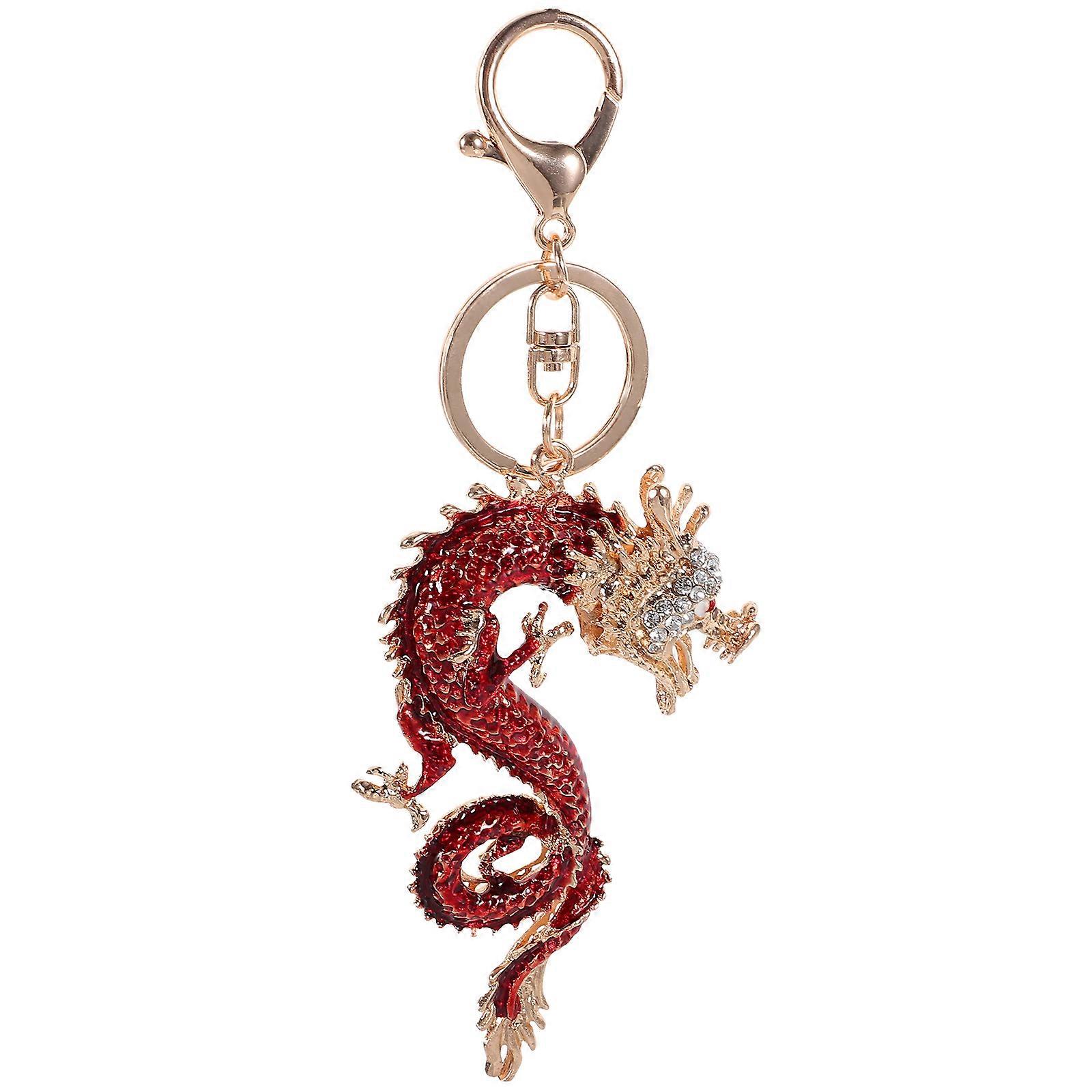 Red Chinese Dragon Keychain Alloy Car Hanging Decor Craftsmanship MultiFunctional Use