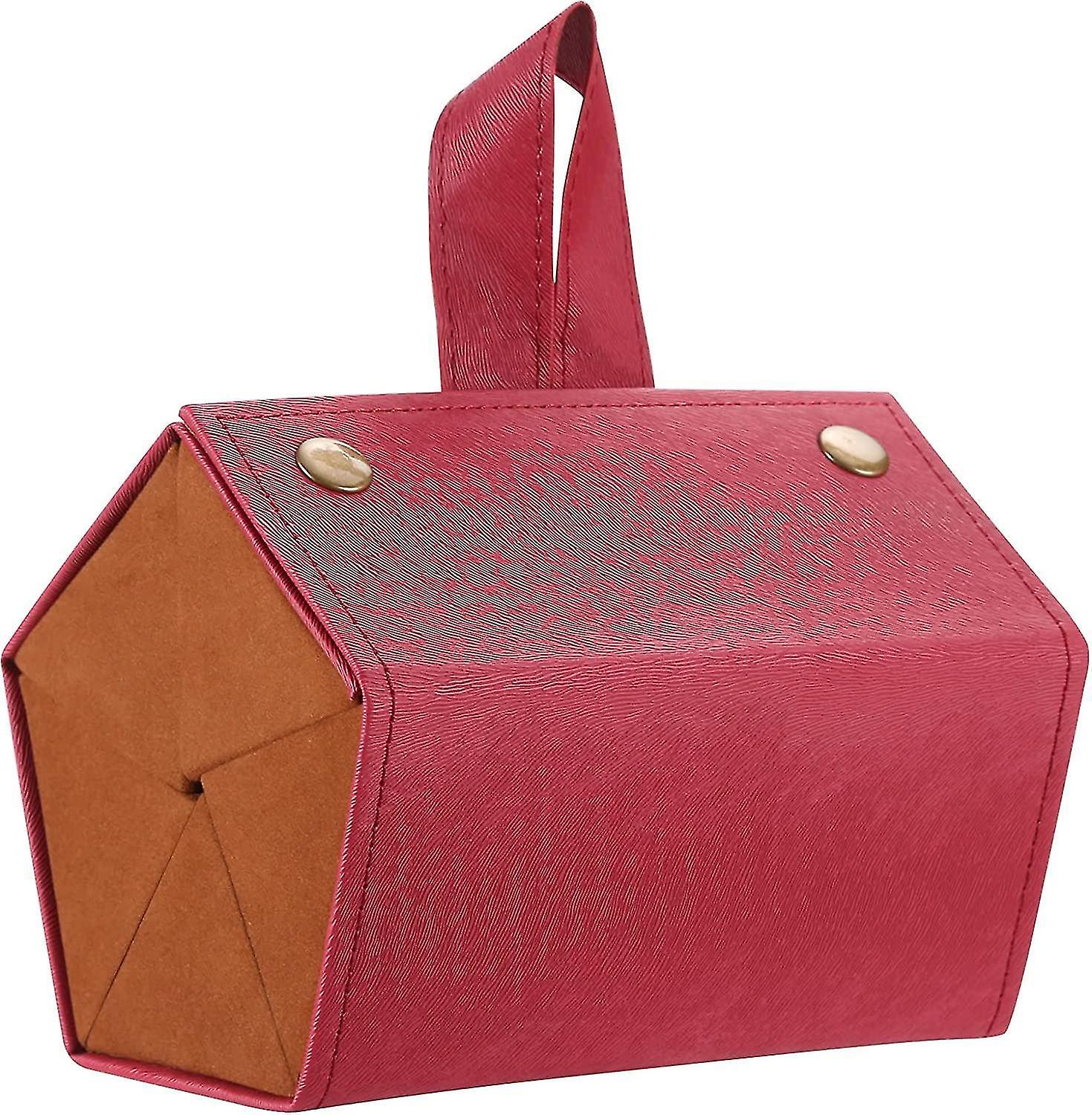PU Magnetic Closure High Quality Our glasses case is sturdy and durable, with simple and stylish design, made of high quality PU, red + brown, also suitable for all glasses. Home and Travel 1. Hanging design, can be hung in the closet, behind the door or on a shelf. 2. Folding design, open it and you can easily find different glasses to match your daily clothing. It rolls up very small. The space is small. 3. One box can hold 5 pairs of glasses, which is perfect and convenient. 4. Suitable for folding up to protect your sunglasses and glasses when traveling. Multifunctional In addition to being used as a sunglasses storage bag, it can also store glasses, watches, keys, cosmetics, necklaces and other small items. Sufficient storage space The sunglasses storage box has an expanded size of 18.9 x 6.41 inches, a rolled size of 6.41x4.72x3.26 inches, and 5 independent slot spaces. It fits your larger size sunglasses. Foldable design, compact space, each one exists independently, no need to worry about wear and damage.