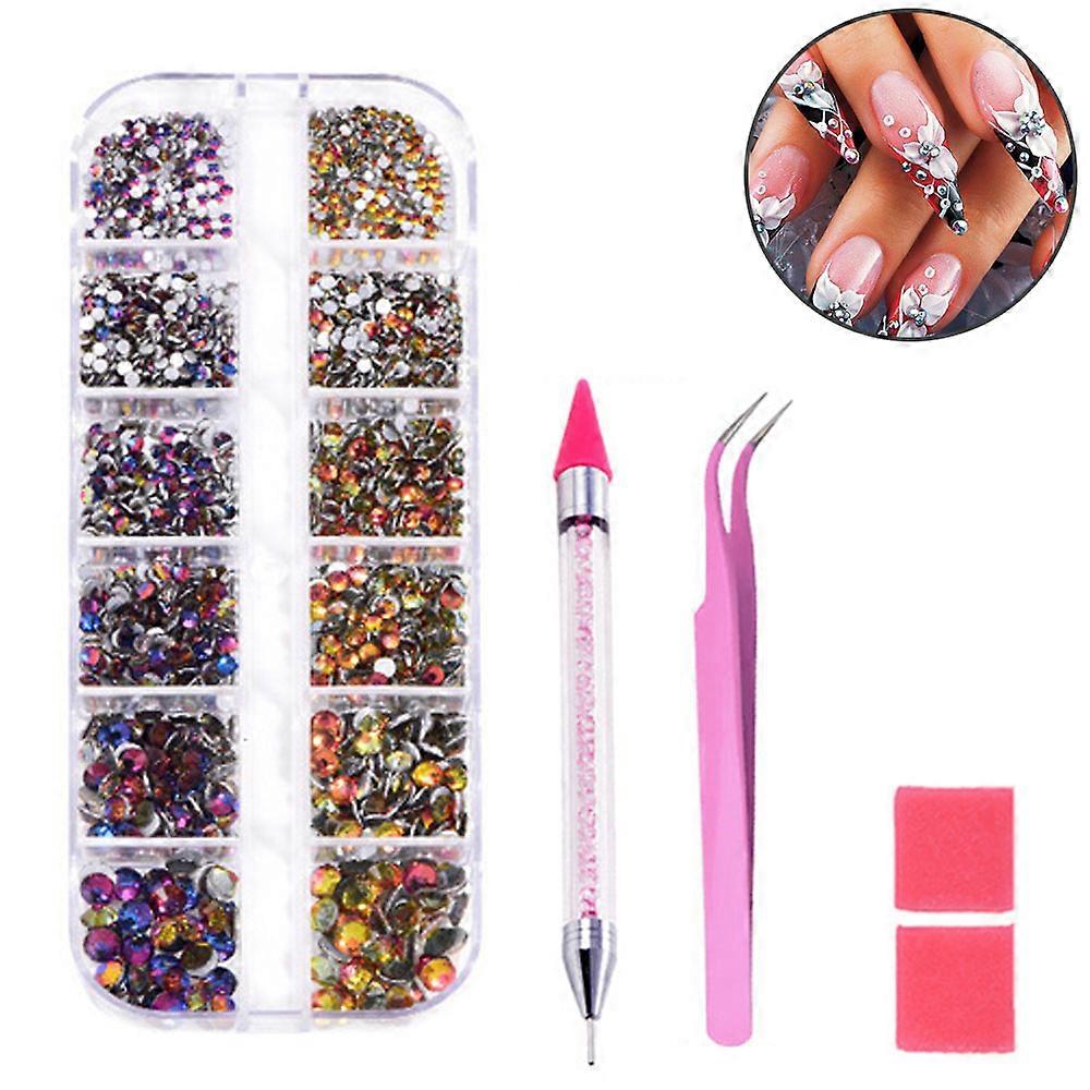Red Flame + Blue Flame - 1440 Pieces - 12 Boxed Nail Drills + Pink Dot Drill + Tweezers + 2 Pieces Glue