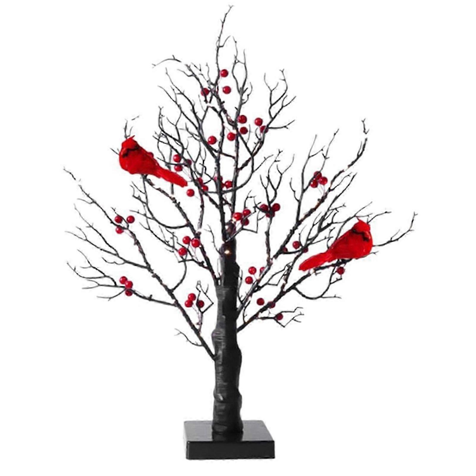 LED Vintage Glowing Tree with Red Birds - Perfect Tabletop Centerpiece for Holiday, Xmas, and Spring Festival Home Decor
