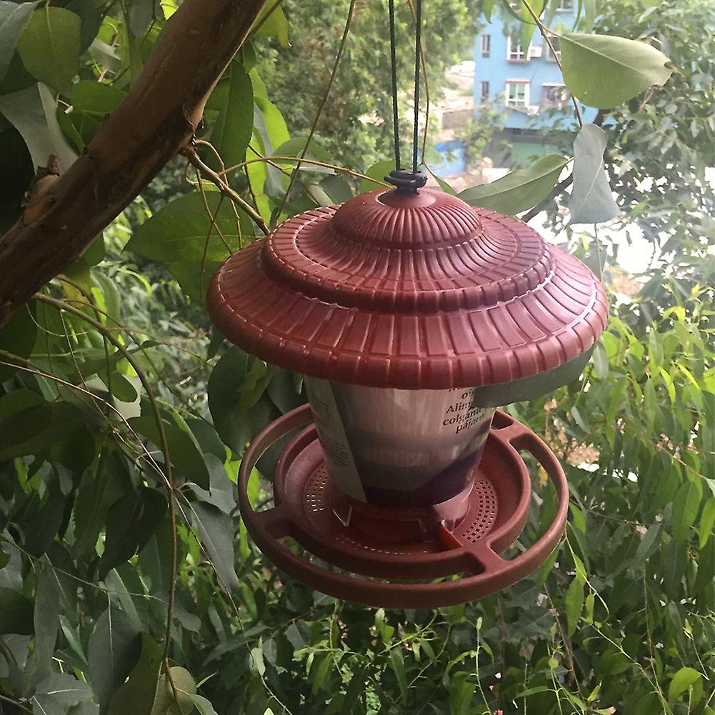 Red 18cm Hanging Bird Feeding Container with Transparent Bowl