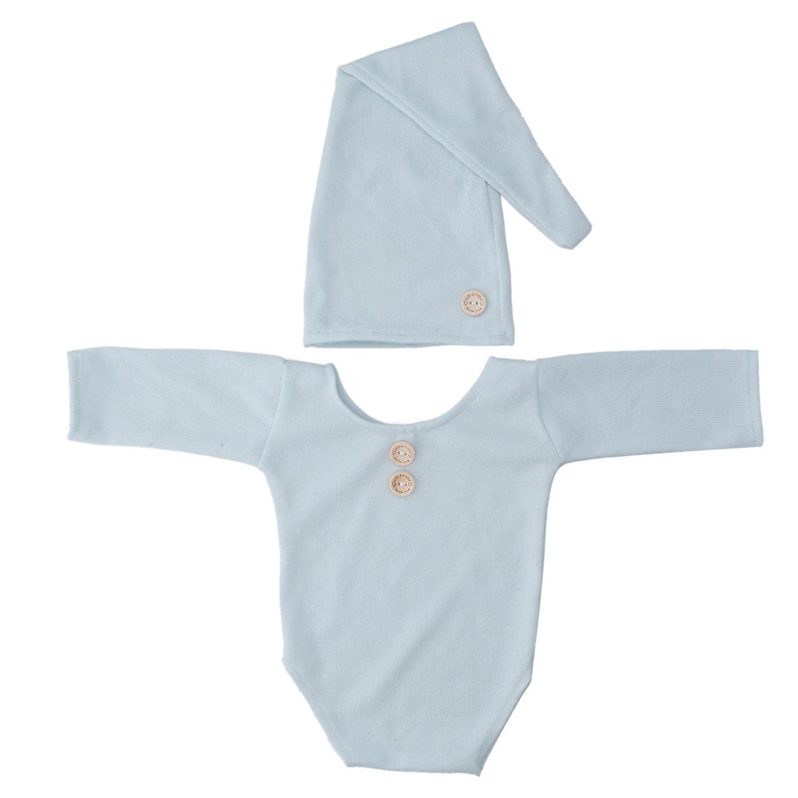 Baby Crochet Knit Photography Clothes Light Blue Baby Photo Suit with Long Tail Hat for Babies From 0‑2 Months