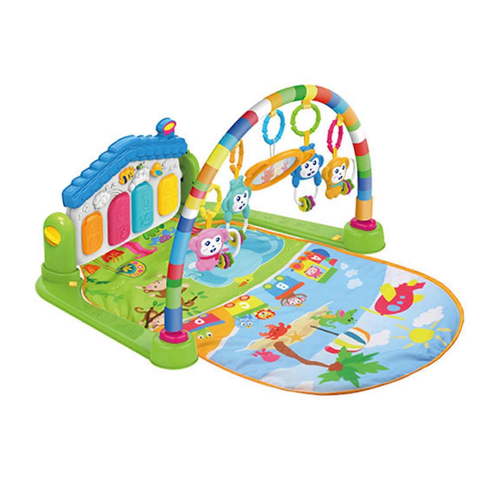 Introducing the baby play mat, a versatile and interactive play space designed to stimulate your baby's development and provide hours of entertainment. The play mat features a rotating and removable piano with complete functions and music modes, accompanied by flashing lights to promote muscle development and color recognition. The soft and fun blankets are adorned with colorful cartoon patterns, creating a lively and cheerful environment for your little one. The play arch includes 4 rattles and mirrors, encouraging your baby to grasp and explore, while the piano below helps exercise leg strength with its engaging sounds. Crafted with environmentally friendly materials, the play mat is washable and will not fade after repeated washing. The cloth pad is made of pure cotton, ensuring breathability and skin-friendly comfort for your baby. Additionally, the adorable baby monkey pendant adds a delightful touch that babies love. This play mat is designed to accompany your baby through multiple stages of growth, creating a wonderful childhood full of exploration and learning. Give your baby the gift of a stimulating and enjoyable playtime experience with the baby play mat. Item Name: Baby Play Mat Material: Plastic, Cloth Suitable Age: 1-36 Months Features: Multifunctional, Educational, Light & Music Size Details: L: 84cm/33.07", W: 65cm/25.59", H: 45cm/17.72" (Approx.) Notes: Due to the light and screen setting difference, the item's color may be slightly different from the pictures. Please allow slight dimension difference due to different manual measurement. Package Includes: 1 x Baby Play Mat
