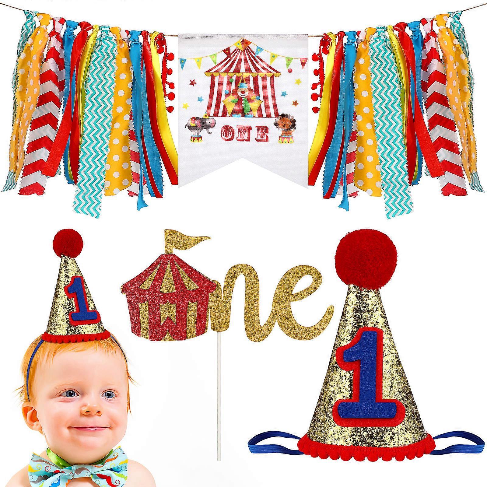 Baby First Birthday Circus Theme Decor Kit with Banner and Hat