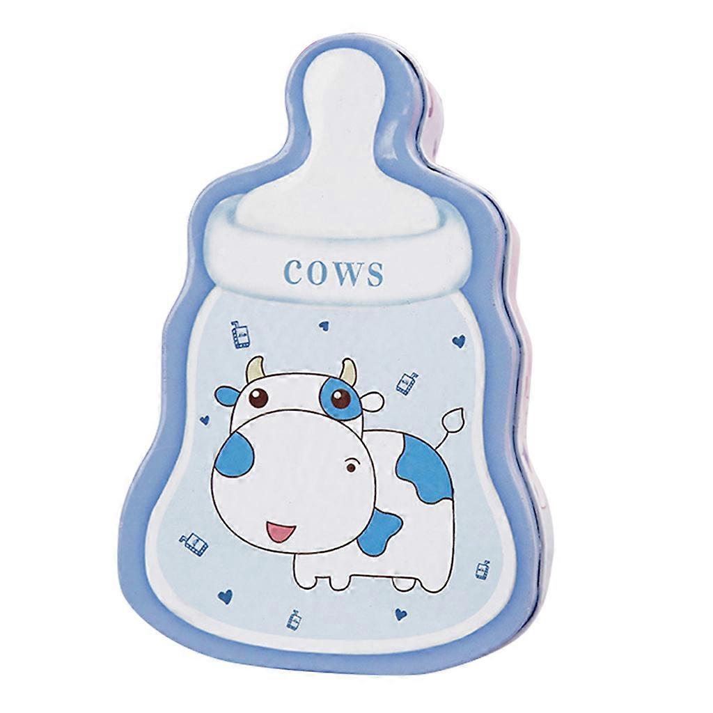 Baby Feeding Bottle Shape Empty Metal Box Candy Storage Can Tinplate Organizer Blue cow