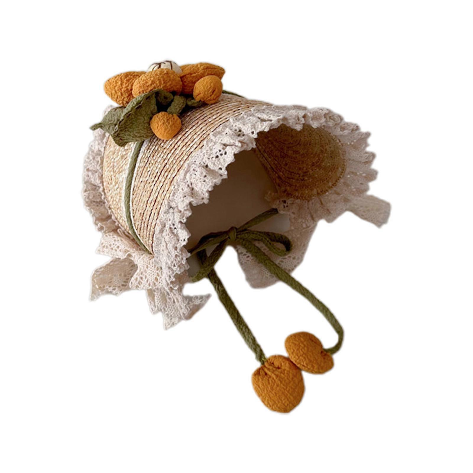 Baby Girl Sun Protective Hat French Princess Hat Lace-up Straw Cap Large Brimmed Hat Girls Summer Spring Chic Headdress natural yellow
