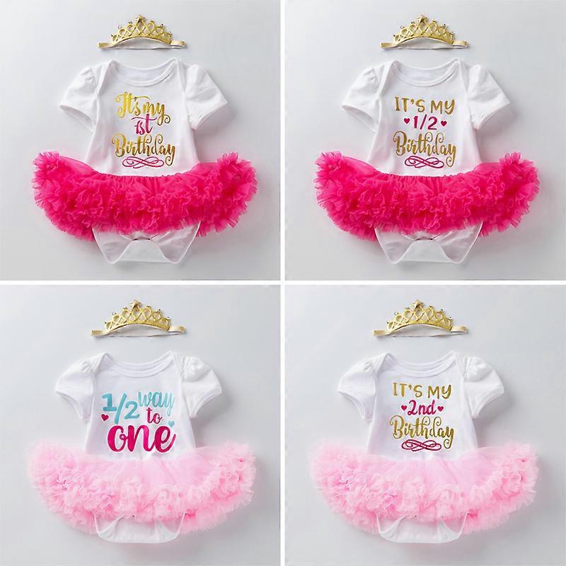 Baby girl birthday dress dress baby half a year old 1-2 years old short sleeves
