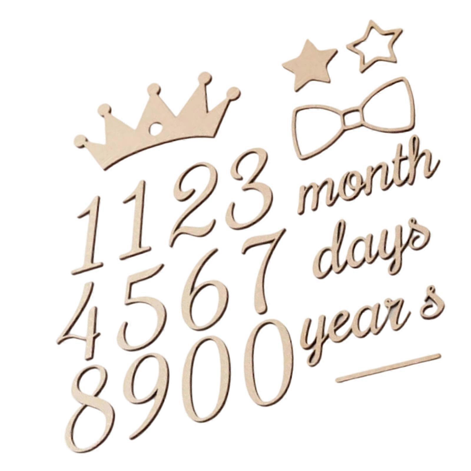 Baby Month Milestones Wooden Number Word Natural Photography Props Customizable Nursery Display Announcement Cards Set Multicolor