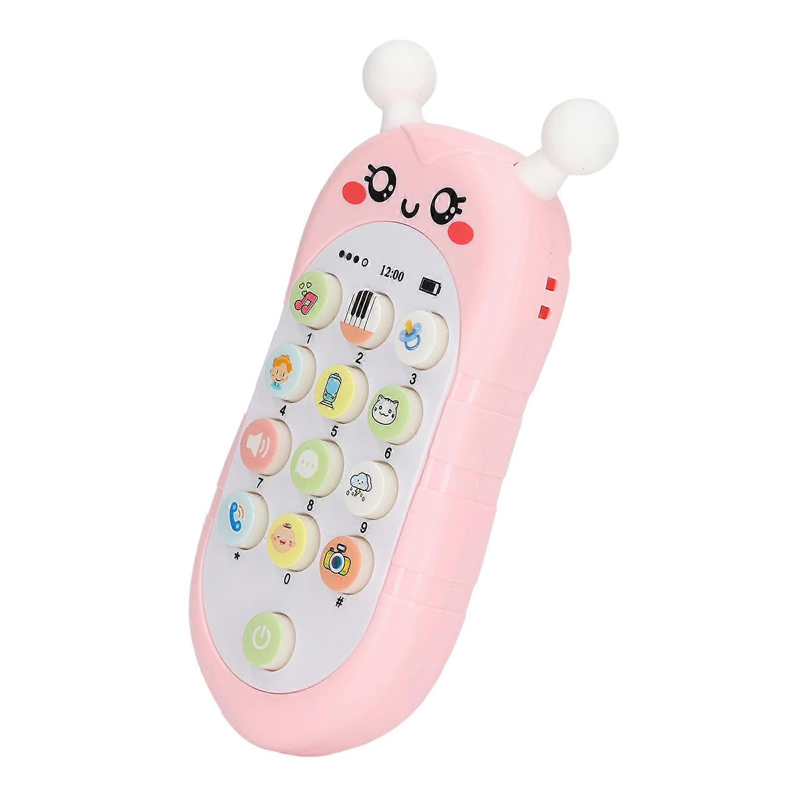 Baby Phone Toy Multifunction Honeybee Style Aid Sleeping Music Battery Powered Baby Cell Phone for Early Education Game Pink with Lanyard
