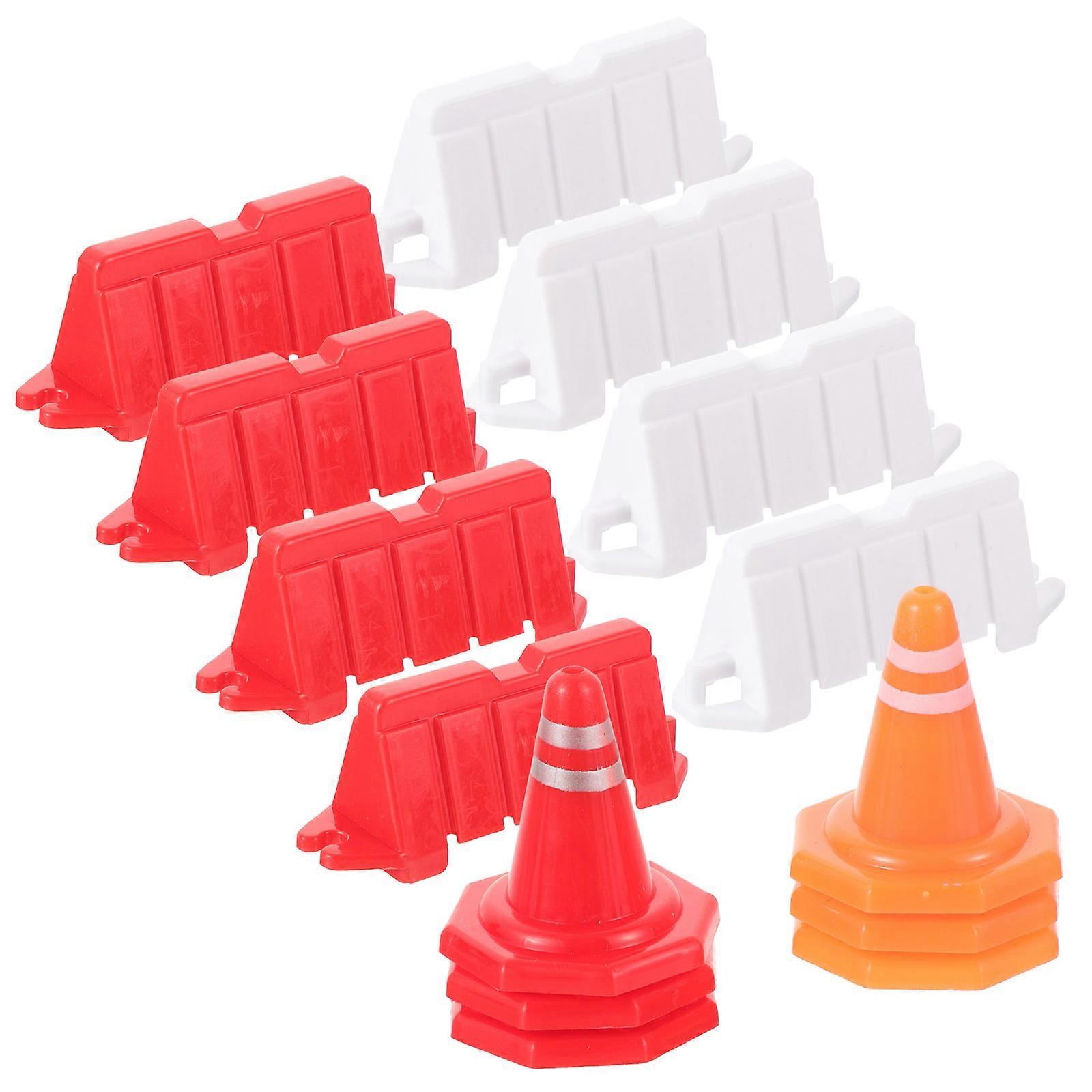 40pcs Mini Traffic Signs with Red & Orange PP Road Barriers – White & Red Water Filled Barricades for Educational Pretend Play, Traffic & Parent
