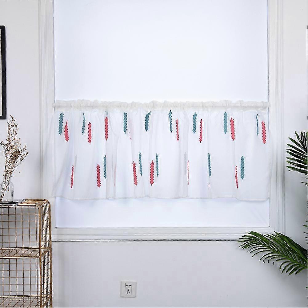 Short Embroidered Curtains for Bedroom and Kitchen Decoration in Red and Blue Wheat